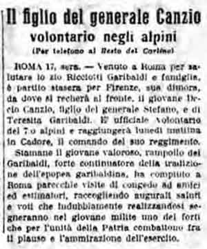 la notizia compare sul giornale in data di giovedì 17 giugno 1915