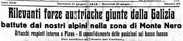 la notizia compare sul giornale in data di mercoledì 23 giugno 1915