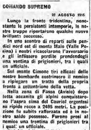 titolo e comunicato compaiono sul giornale in data di venerdì 25 agosto 1916