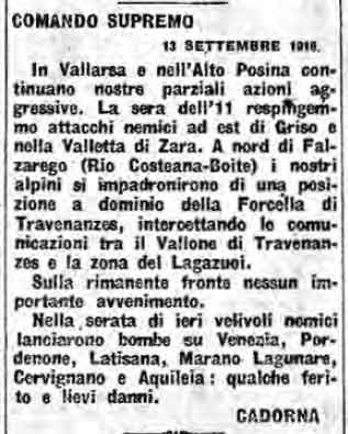 il comunicato compare sul giornale in data di giovedì 14 settembre 1916