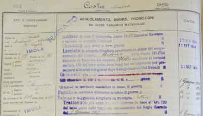 il ruolo matricolare ritrovato nel corso delle ricerche |