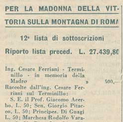 sul Terminillo una Chiesetta, citando la notizia che compare su L'ALPINO del 15 dicembre 1935, "Continuano ad affluire alla Segreteria