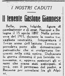 valoroso ufficiale bolognese, caduto il 29 agosto 1917 sulle balze