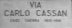 Carlo Cassan, nato nel 1884 a Rimini (Forlì), poi trasferito a Padova. Tenente del 5° Rgt. Alpini caduto sul Monte Pasubio il 19 settembre 1916, decorato di medaglia d'argento "alla memoria", ecc.