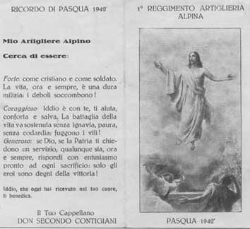 per i soldati, cartoncini e “santini” distribuiti gratuitamente dai