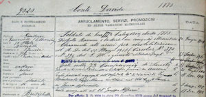Sanità dove rimane fino al 9 aprile 1919 quando viene inviato in licenza temporanea in attesa del congedo. Richiamato il 16 agosto presso la 6ª compagnia di Sanità di Bologna, nello stesso giorno viene provvisto di congedo illimitato.