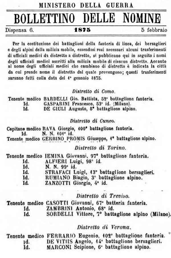medici degli Alpini nel febbraio 1875